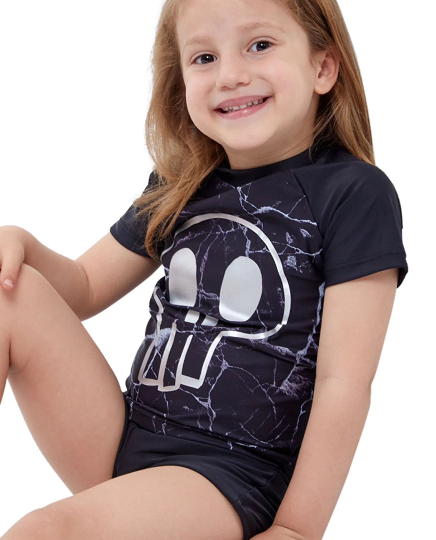 Gottex Kids Silver Skull Short Sleeve Swim Shirt with Matching Swim Short